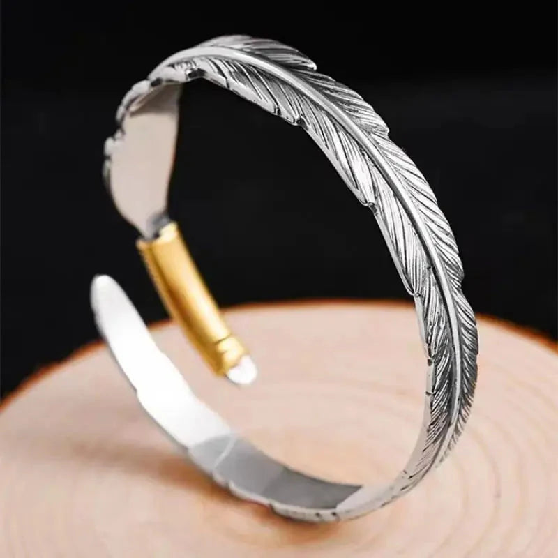 A Pulseira de Aço Masculina Pena adiciona um elemento de estilo único e sofisticado ao seu visual, destacando-se em qualquer ocasião.